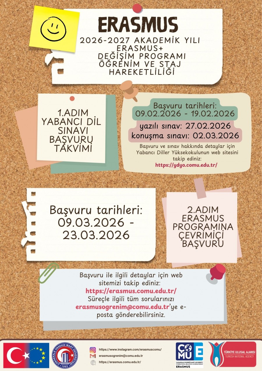 2026-2027 Akademik Yılı Erasmus Öğrenim ve Staj Hareketliliği Başvuru Takvimi için