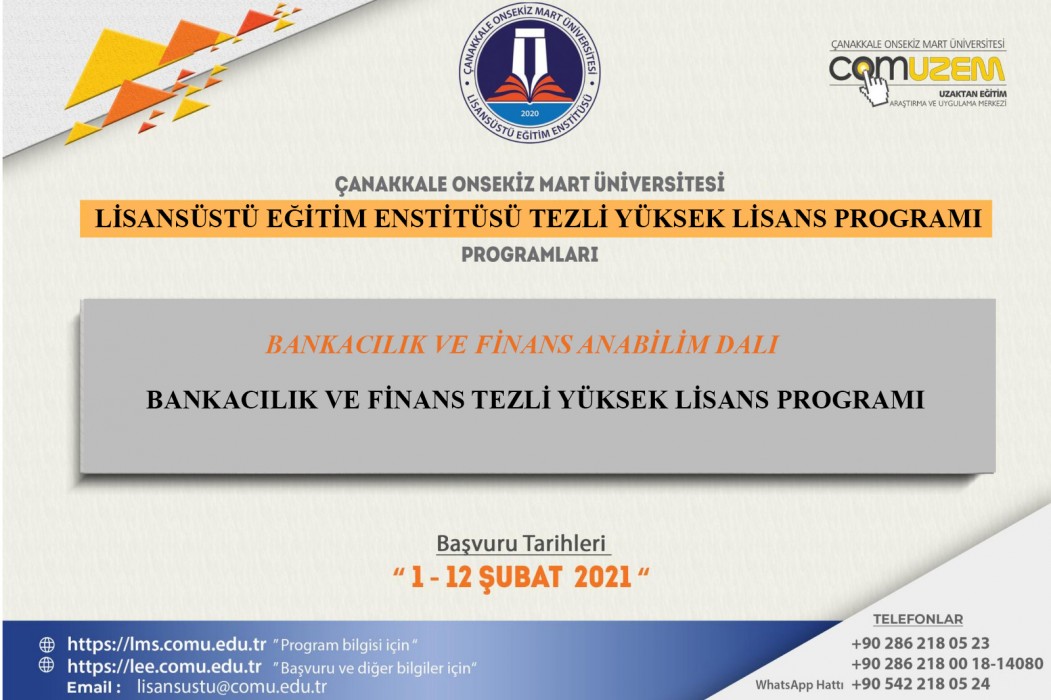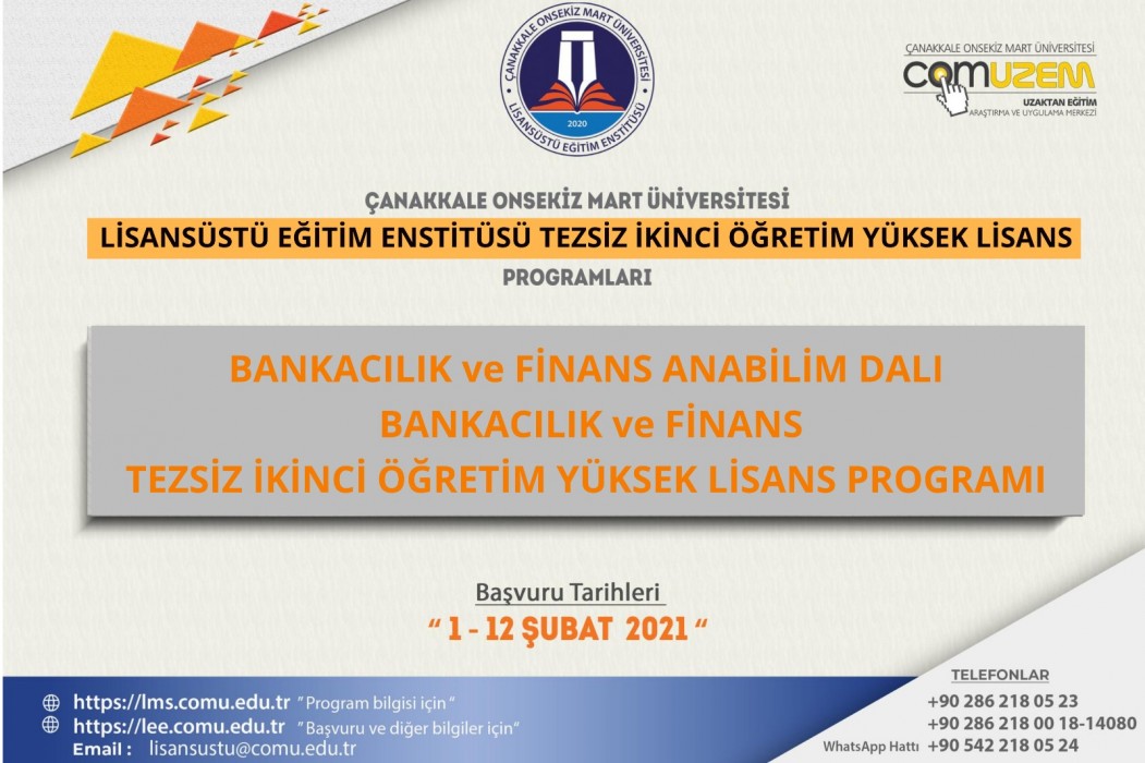 Bankacılık ve Finans Yüksek Lisans Programları Başvuru Takvimi