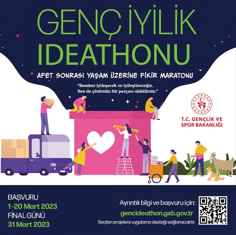 T.C. Gençlik ve Spor Bakanlığı tarafından 6 Şubat 2023 tarihinde Kahramanmaraş'ın Pazarcık ve Elbistan ilçelerinde meydana gelen ve 11 ilimizde etkili olan deprem afeti sonrasında ortaya çıkan ihtiyaç ve iyileştirme alanlarına yönelik çözümler konusunda gençlerin gözlemledikleri sorunları, kendi bakış açıları ile ifade etmeleri ve sorunlara yönelik çözüm önerilerini sunmaları amacıyla "Genç İyilik Ideathonu" konulu fikir yarışması düzenlenmektedir.