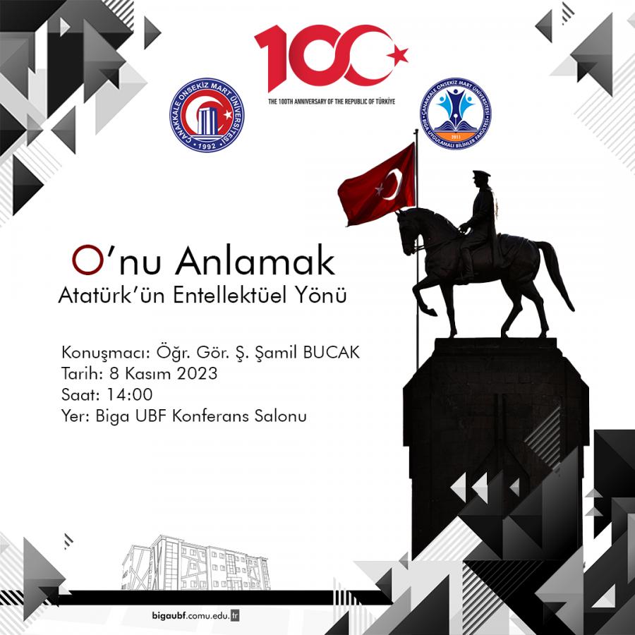 Türkiye Cumhuriyeti’nin kurucusu Gazi Mustafa Kemal ATATÜRK’ün vefatının 85. yıl dönümü dolayısıyla Üniversitemiz Atatürk İlkeleri ve İnkılâp Tarihi Bölüm Başkanlığı’nda görev yapan Ögr. Gör. Ş. Şamil BUCAK tarafından "O’nu Anlamak: Atatürk’ün Entelektüel Yönü" konulu konferans düzenlenecektir.