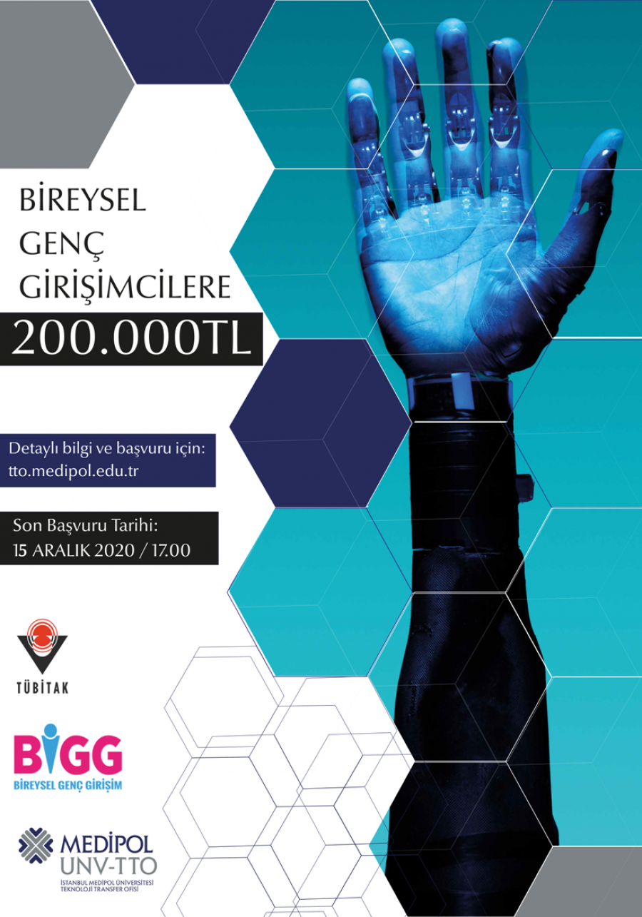 Medipol Üniversitesi Girişimcilik Merkezi, TÜBİTAK BİGG Uygulayıcı Kuruluşu olarak; teknoloji ve yenilikçi iş fikri için TÜBİTAK tarafından verilecek 200 Bin TL’lik hibe imkanı ile hayalini kurduğunuz fikrinizi hayata geçirmek için tüm girişimcilerimizin başvurularını bekliyor.